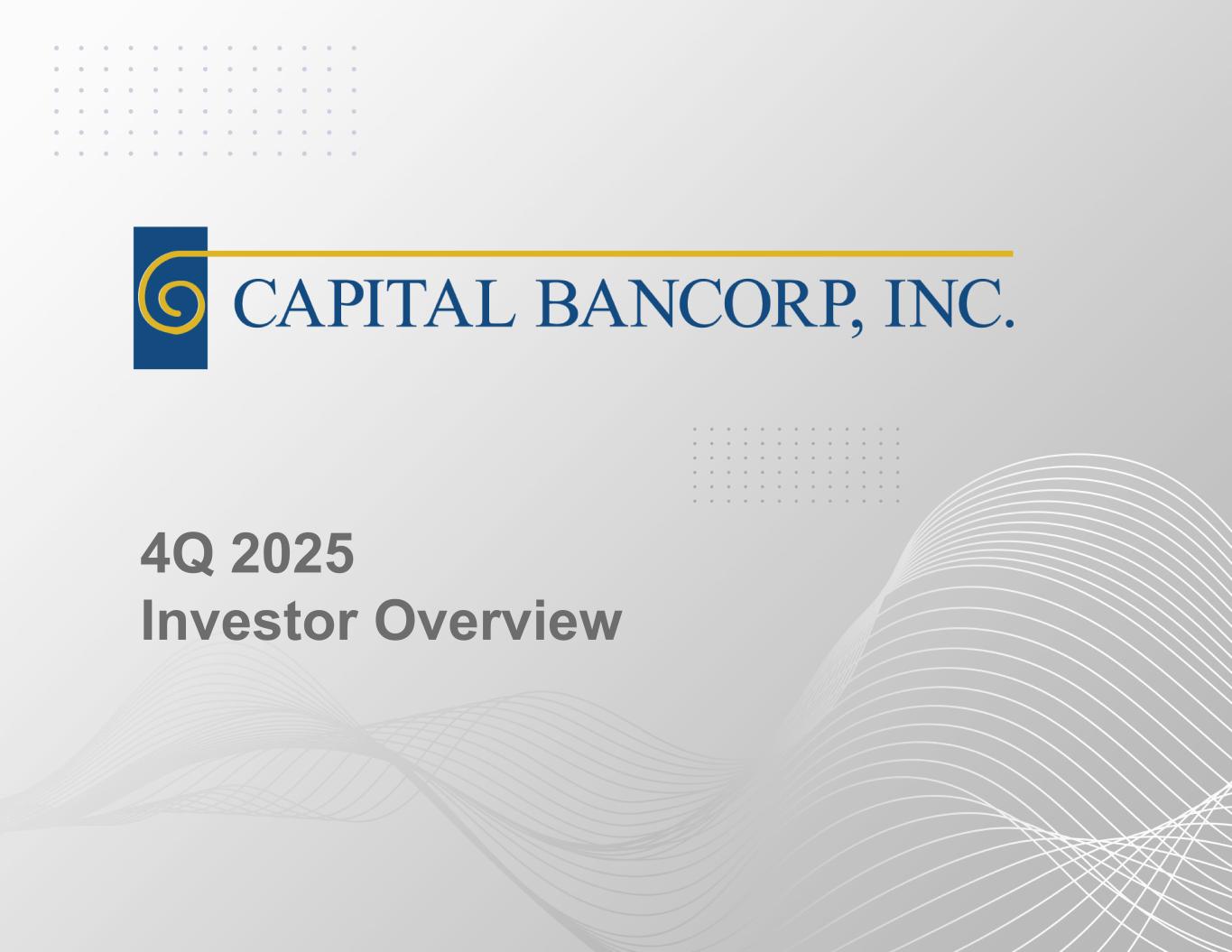 Capital Bancorp, Inc., Rockville, Maryland is a registered bank holding company incorporated under the laws of Maryland. Capital Bancorp has been providing financial services since 1999 and now operates bank branches in four locations in the Washington, D.C., Baltimore, other Maryland markets, one bank branch in Fort Lauderdale, Florida, one bank branch in Chicago, Illinois and one bank branch in Raleigh, North Carolina. Capital Bancorp had assets of approximately $3.6 billion at December 31, 2025 and its common stock is traded in the NASDAQ Global Market under the symbol “CBNK.” More information can be found at the Company's website www.CapitalBankMD.com under its investor relations page.