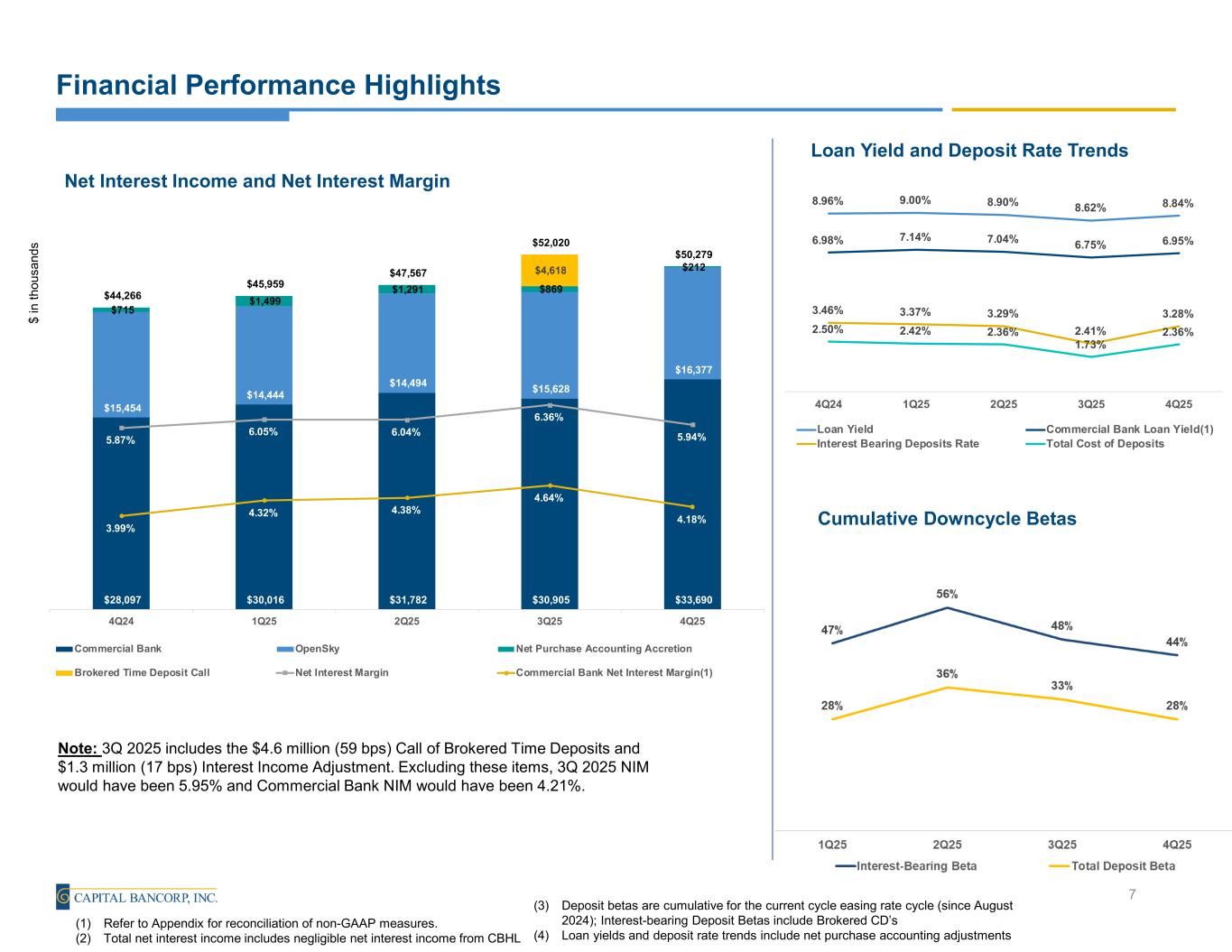 •Net interest income decreased $1.7 million, or 3.3% (not annualized) from 3Q 2025, mainly due to the $4.6 million of accretion during 3Q 2025 from refinancing callable brokered time deposits acquired in the IFH transaction, and increased $6.0 million, or 13.4% from 4Q 2024, primarily driven by growth from the Commercial Bank.