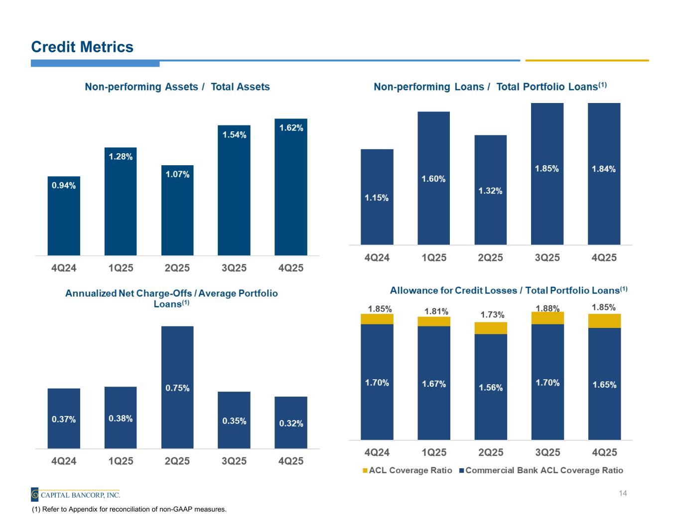 ◦The Commercial Bank ACL Coverage Ratio(1) equaled 1.65% at December 31, 2025, which represented a 5 bps decrease from 1.70% at both September 30, 2025 and December 31, 2024