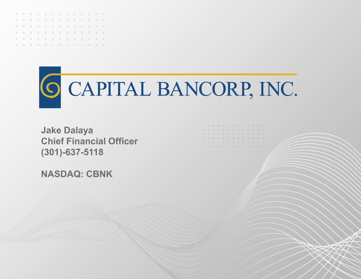Jake Dalaya Chief Financial Officer (301)-637-5118 NASDAQ: CBNK